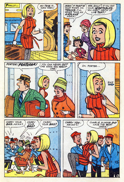 Here we have not just the "origin"of Millie the Model but also her first story as she returned to her Archie-style art after more than a half decade of soap opera style art from such artists as Ogden Whitney and Stan Goldberg. This, in fact, may BE Stan G as GCD has Mark Evanier revealing that Stan ghosted for Sol Brodsky who signed this one. Stan was actually better at this style of art than the more serious stuff and would go ion to decades of it for Archie Comics.