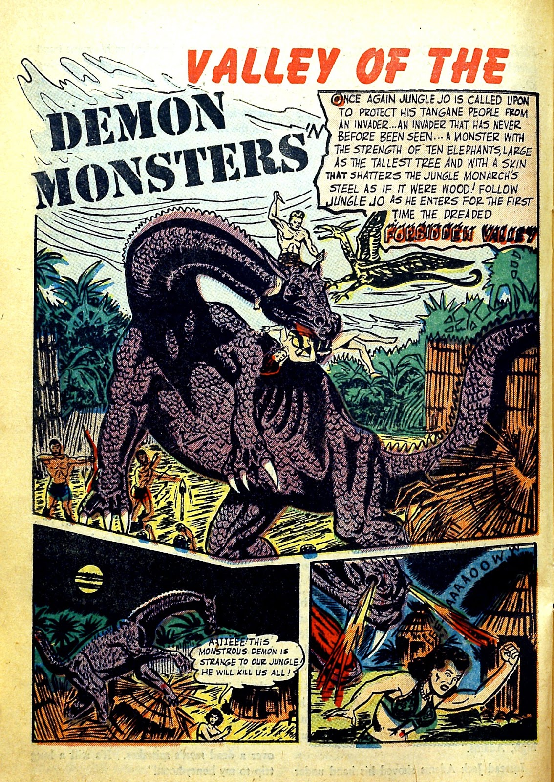 Meet Jungle Jo, star of his own now-forgotten comic and here reprinted in the bizarrely title Blue Bolt's Weird Tales. He's a rather anorexic fella as white jungle kings go. Sometimes we post long-lost stories here with excellent art by unsung artists. This is not one of those times.