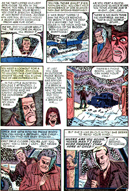 Be it movies, artwork, photographs, or comics, I love a good snow scene, and this story IS one. Some nice creepy art from penciler/inker/letterer Jon D'Agostino long before he settled in with teenage and children's comics artwork.